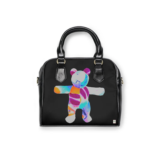 Black Shoulder Handbag - Bold Graffiti Teddy Bear